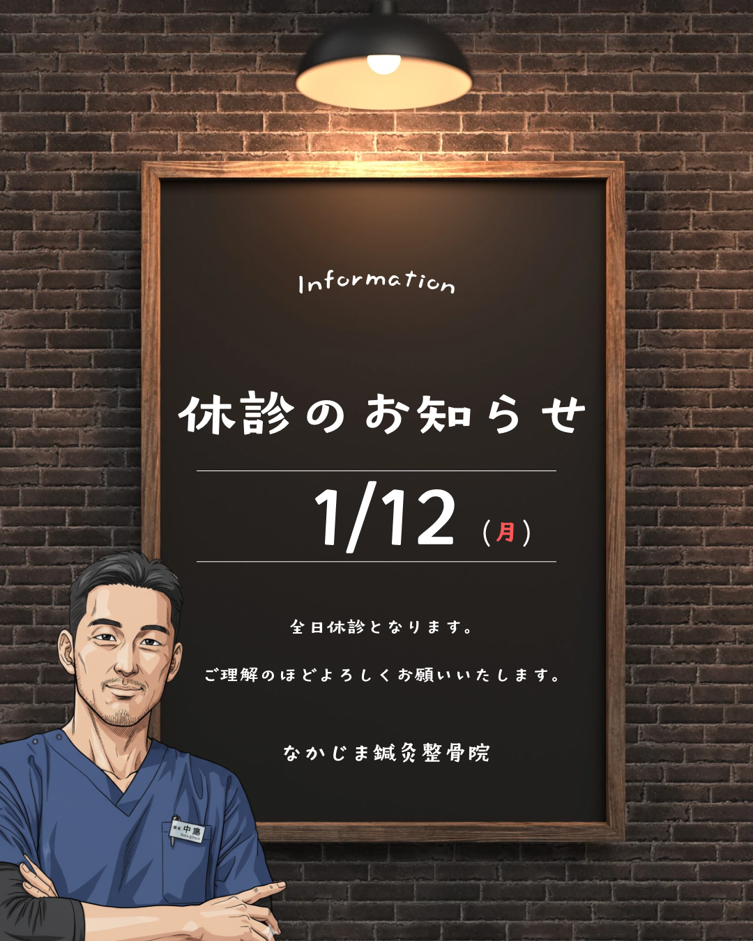 来週の1月12日(月)は成人の日のため全日休診とさせていただきます。